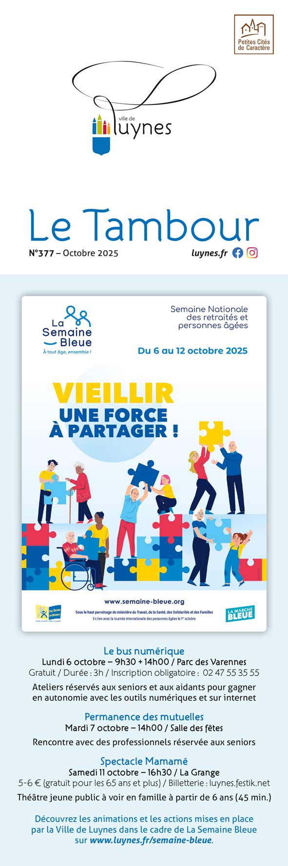 La Ville de Luynes soutient La Semaine Bleue, semaine nationale des retraités et des personnes âgées, et propose un programme d'actions et d'animations en direction de nos aînés. 🔵...