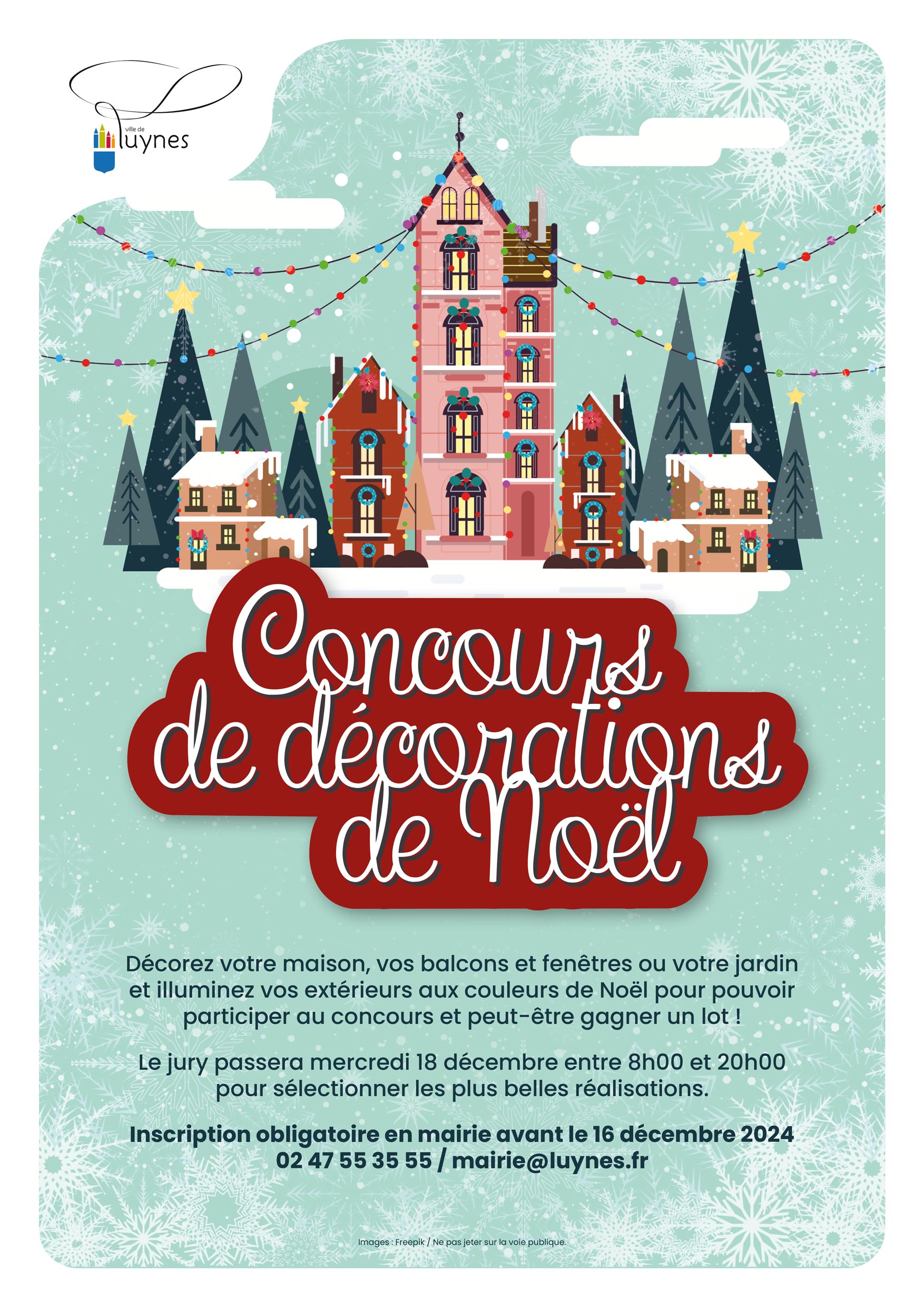 Les foyers luynois souhaitant participer au concours devront obligatoirement s’inscrire auprès de la mairie avant le lundi 16 décembre 2024 à 17h00. Les participants peuvent s’inscrire à l’accueil de l’hôtel de ville, par téléphone au 02 47 55 35 55 ou par courriel à mairie@luynes.fr en indiquant leurs prénom, nom, adresse postale et un numéro de téléphone ou une adresse électronique.