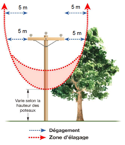 Les distances entre la végétation en domaine privé et la ligne électrique doivent être conformes à la norme NF-C.11-201 (cf. schéma ci-dessous).