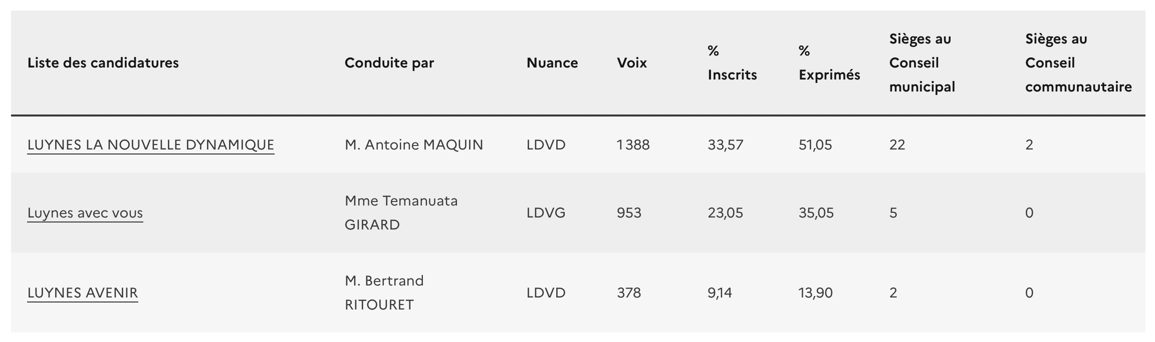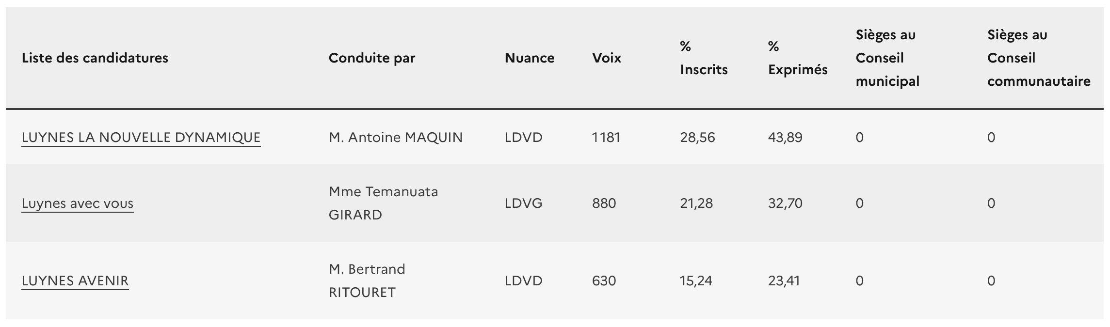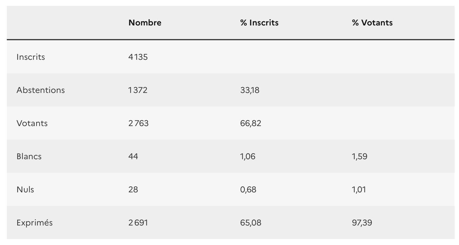Résultats du 1er tour des élections municipales du 15 mars 2026 :
