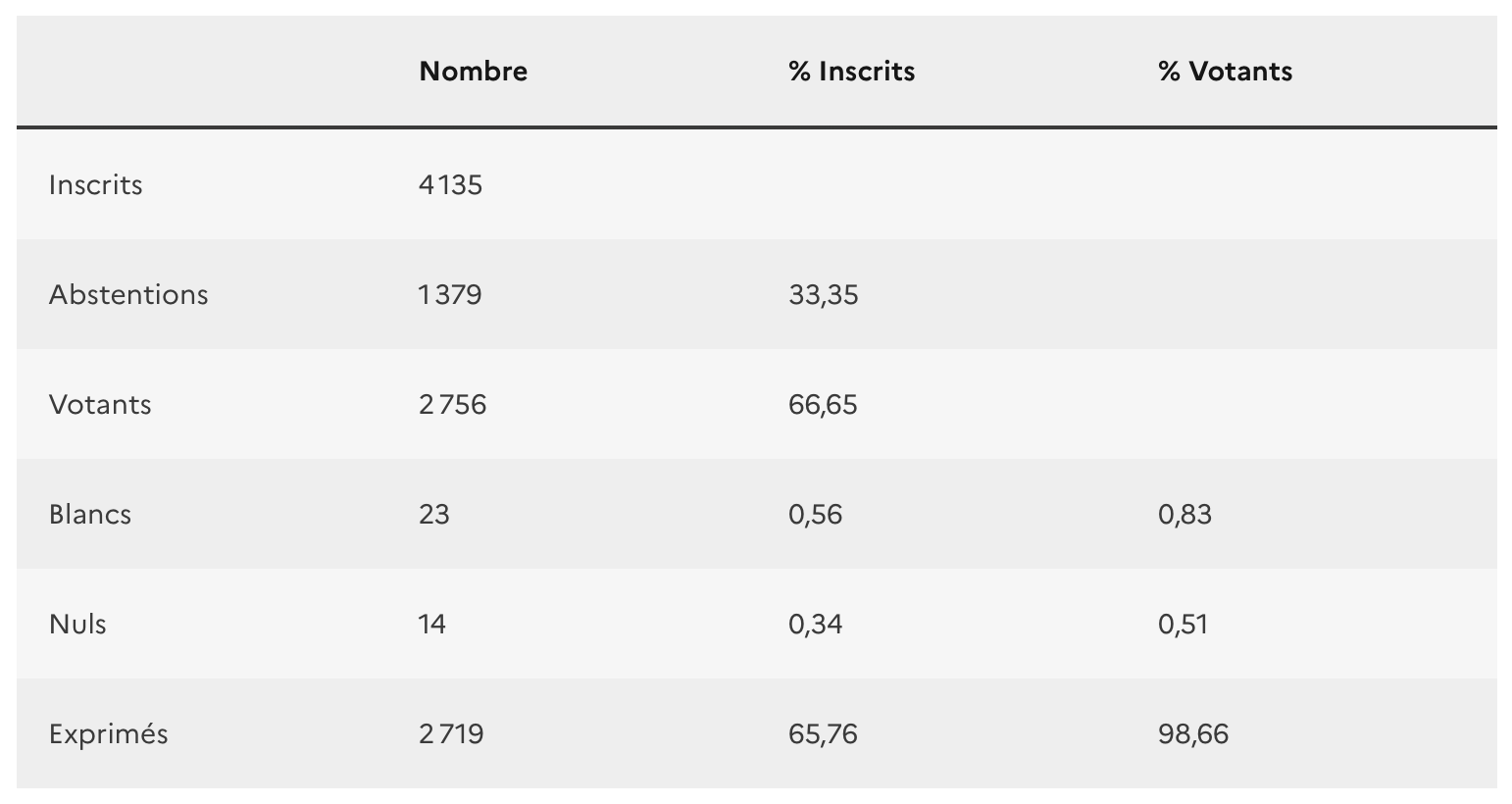 * Résultats provisoires pour les bureaux de vote intégralement dépouillés sous réserve d’éventuelles corrections et de décisions du juge de l’élection