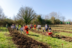 La première action concrète de ce projet a eu lieu au printemps 2025. En partenariat avec l’association Patrimoine végétal et La Ressourceraie, les jeunes du C.M.J., les enfants de La Ruche d’Ernest, les jeunes de La Passerelle, les services municipaux et les élus référents ont participé à la plantation de 300 mûriers blancs sur une parcelle appartenant à la mairie, située rue de l’Alma. Ces arbres sont essentiels pour nourrir le ver à soie, appelé Bombyx mori. Depuis la plantation, la croissance de ces 300 mûriers est suivie de près par La Ressourceraie et les plants sont entretenus par les agents municipaux du service Parcs & Jardins et les salariés de l’ESAT Les Vallées, missionnés pour la taille des arbustes.