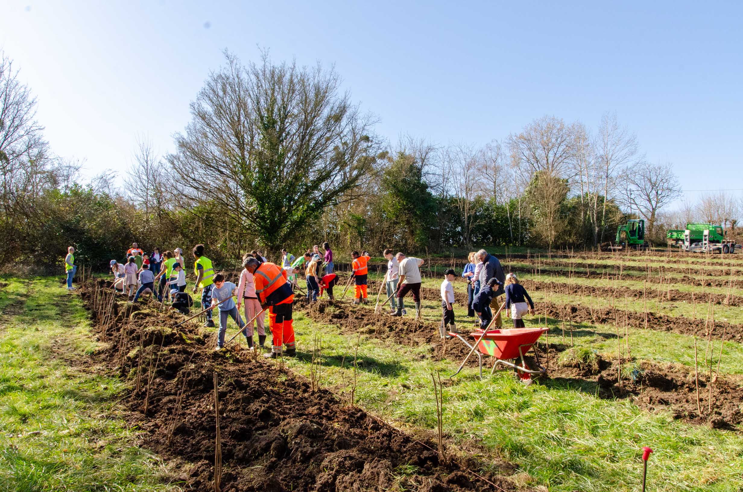 La première action concrète de ce projet a eu lieu au printemps 2025. En partenariat avec l’association Patrimoine végétal et La Ressourceraie, les jeunes du C.M.J., les enfants de La Ruche d’Ernest, les jeunes de La Passerelle, les services municipaux et les élus référents ont participé à la plantation de 300 mûriers blancs sur une parcelle appartenant à la mairie, située rue de l’Alma. Ces arbres sont essentiels pour nourrir le ver à soie, appelé Bombyx mori. Depuis la plantation, la croissance de ces 300 mûriers est suivie de près par La Ressourceraie et les plants sont entretenus par les agents municipaux du service Parcs & Jardins et les salariés de l’ESAT Les Vallées, missionnés pour la taille des arbustes.