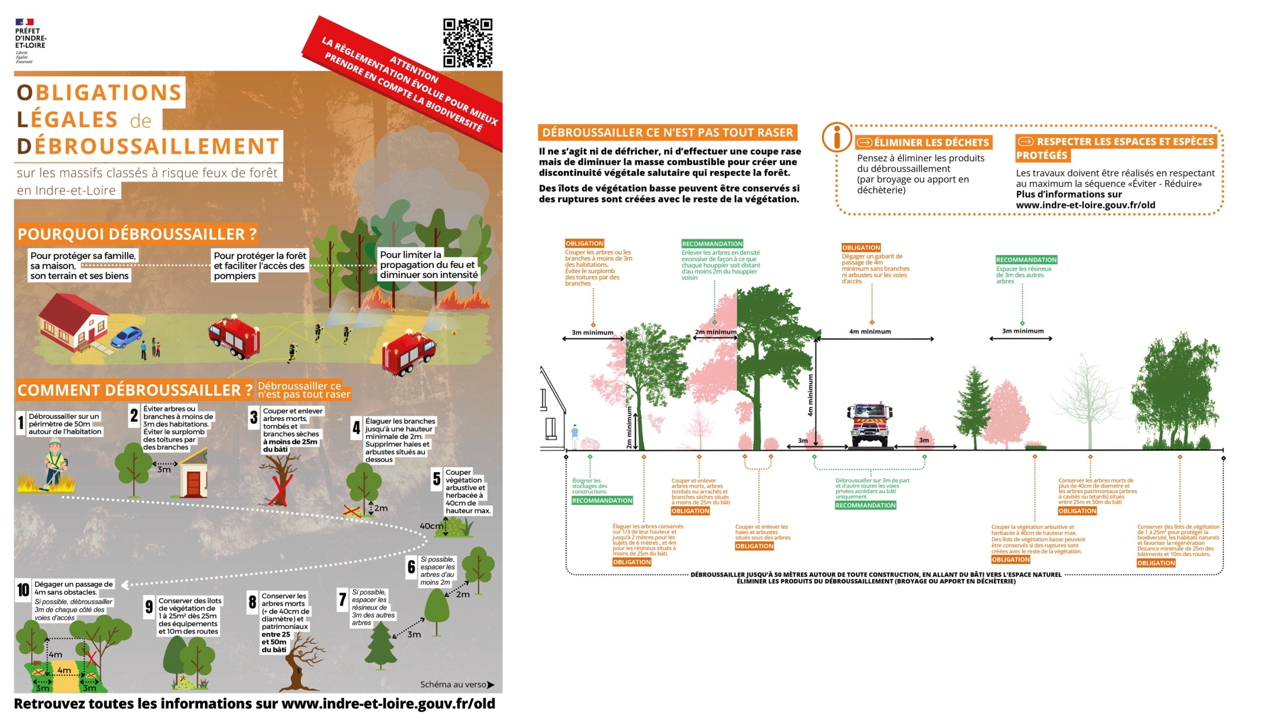 Le débroussaillement (et le maintien en état débroussaillé) est une obligation du Code forestier (articles L-131 à L-134) précisée localement en Indre-et-Loire par l’arrêté préfectoral du 10 mars 2025.