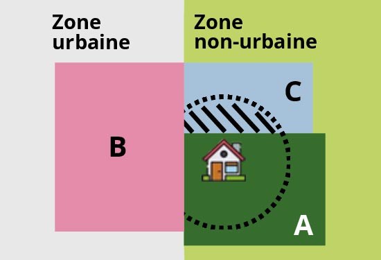 En zone urbaine : Dans les lotissements, LAC OU associations foncières urbaines, la totalité de la parcelle, bâtie ou non, doit être débroussaillée.