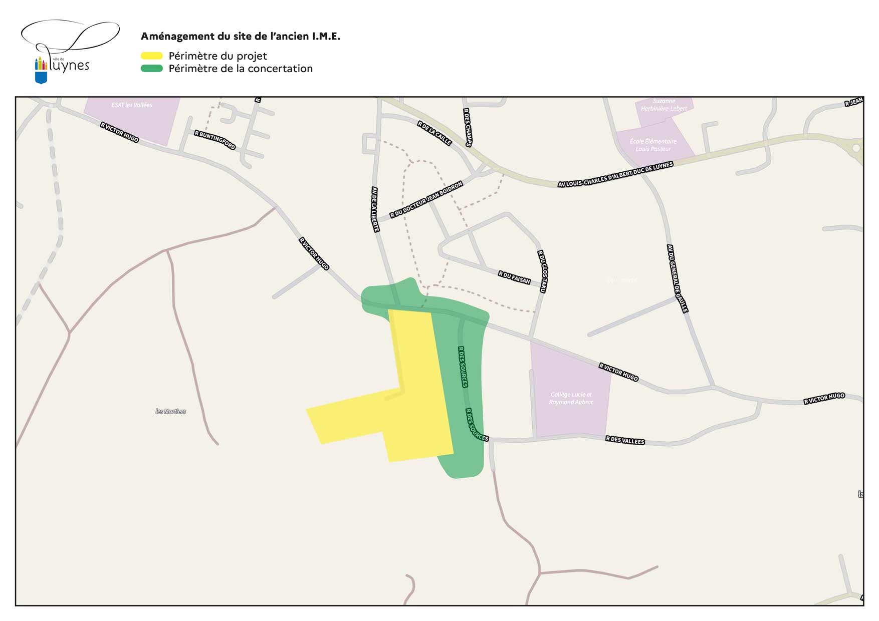 La Ville de Luynes s’engage dans un ambitieux projet de renouvellement urbain sur le site de l’ancien Institut Médico-Éducatif (I.M.E.), situé rue Victor Hugo. Ce projet, inscrit dans les orientations d’aménagement et de programmation (O.A.P.) du Plan Local d’Urbanisme (P.L.U.), vise à transformer ce site de 2,3 hectares en un quartier résidentiel exemplaire, à la fois inclusif, durable et respectueux de son environnement.