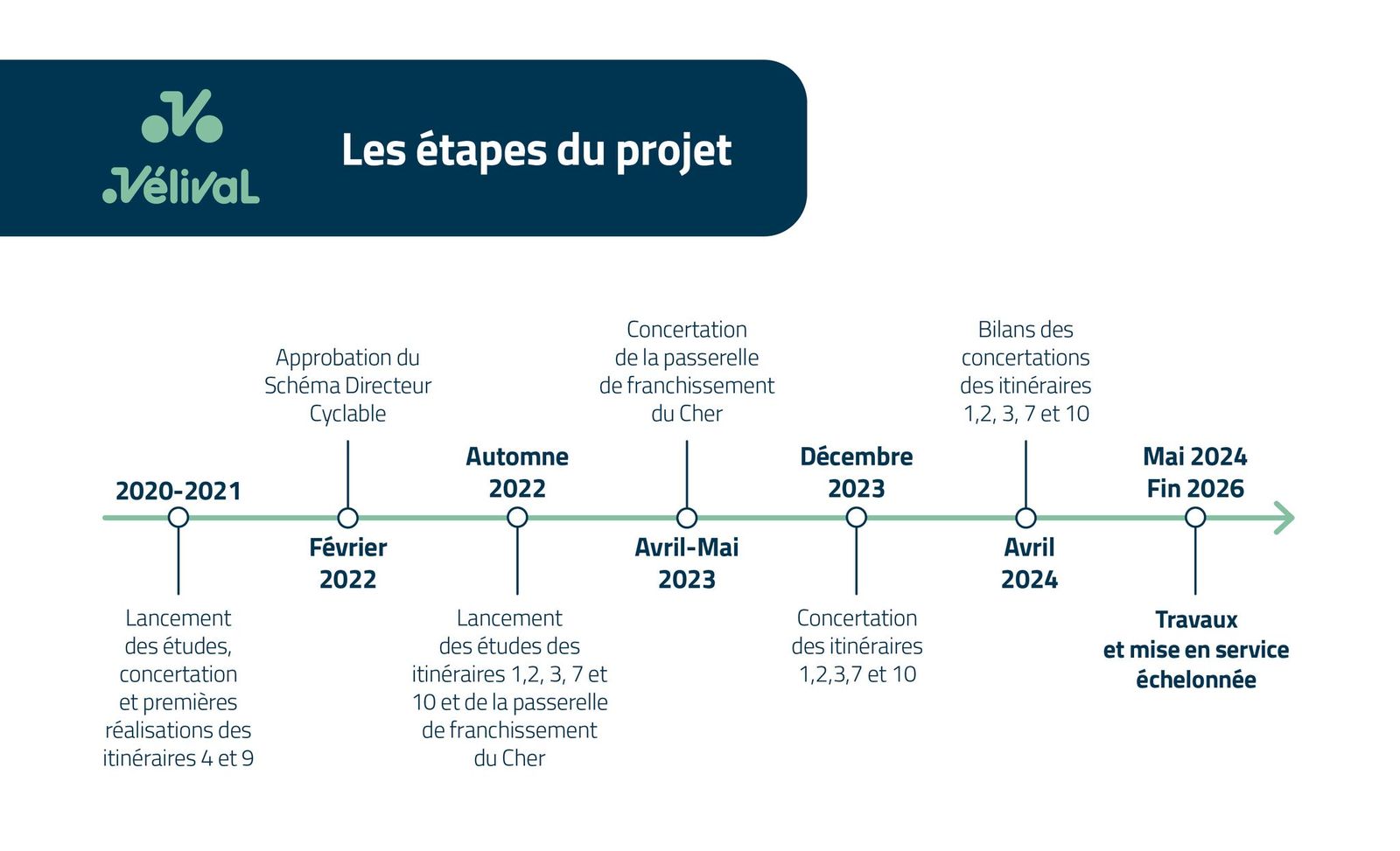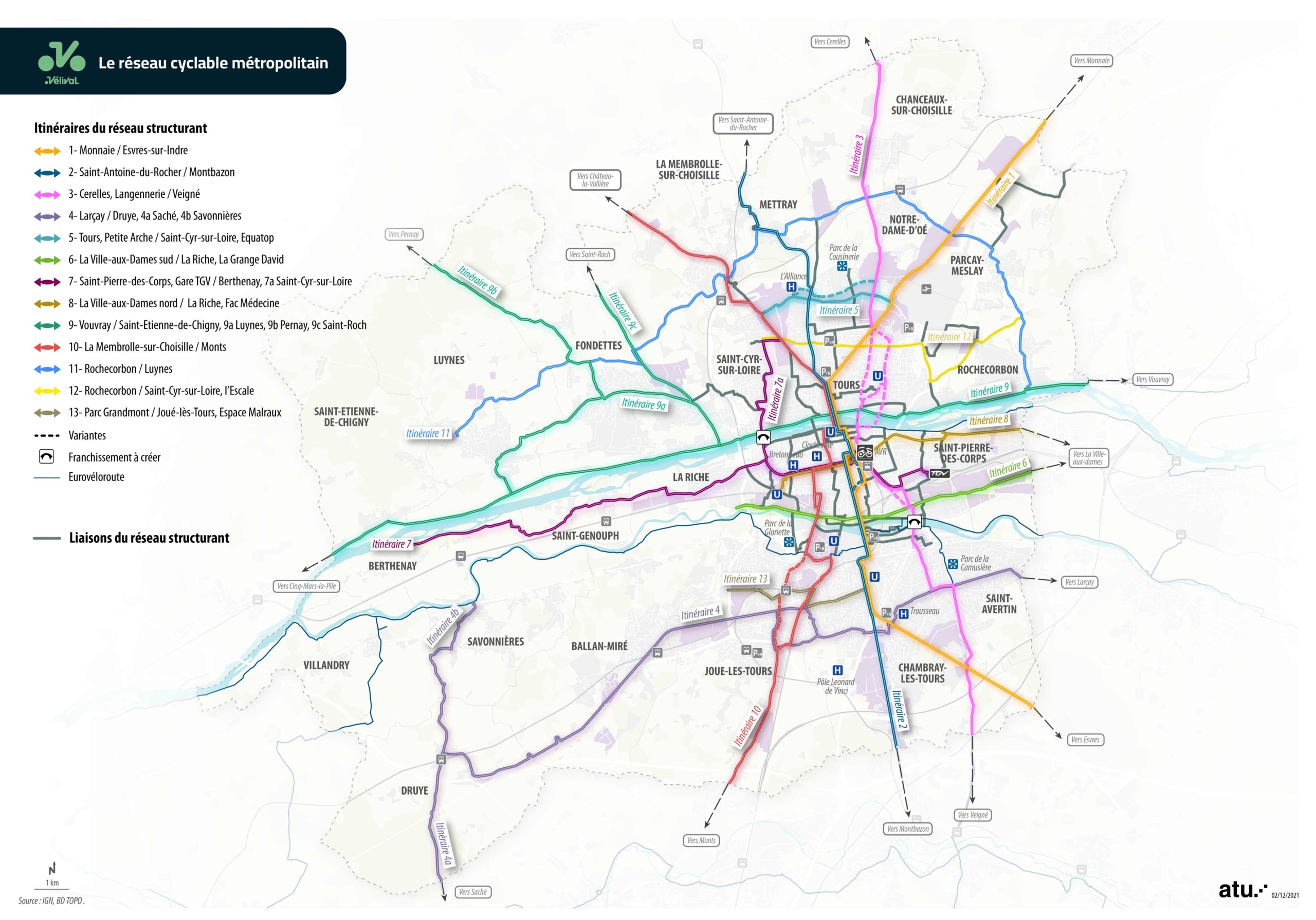 Inscrit dans le cadre de politique cyclable menée depuis plusieurs années par Tours Métropole Val de Loire, Vélival est un projet de réseau cyclable structurant consistant à aménager 13 itinéraires cyclables continus, sécurisés et confortables, représentant un parcours total de 350 km reliant entre elles les 22 communes de la métropole et leurs principaux pôles d’activités.